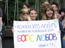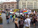Учасники вигукують "Права людини понад усе!", "Бунтуй, кохай, права не віддавай!", "Всі різні, всі рівні".