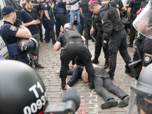 Поліція затримує трьох людей, які перед колоною кричать "Україна - не Содом!"