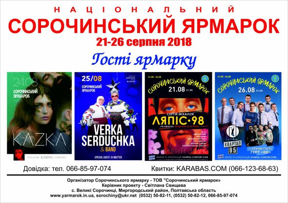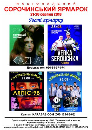 ЧИТАЙТЕ ТАКОЖ: Вартість квитків на концерти під час Сорочинського ярмарку