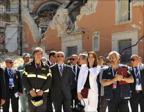 Бруні заздалегідь заявила, що не прийматиме участі в традиційній "жіночій" програмі, організованій для дружин керівників країн "великої вісімки". Вона відмовилася їхати до Риму і прибула безпосередньо в Аквілу. Тут вона відвідала зону стихійного лиха і поспілкувалася з потерпілими від руйнівного землетрусу.