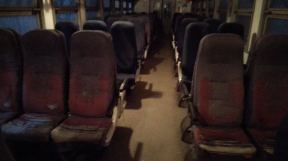 "Якість Укрзалізниці. Їдемо в приміській електричці на Козачу Лопань і трохи в а*уї. Повна рвань.Не вистачає сивого діда з пилкою.