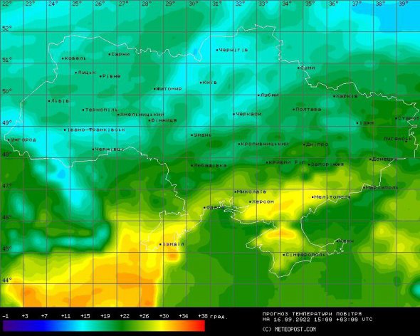 На решті території України максимальна температура повітря впродовж дня становитиме +17...22°С, на сході до +24°С.