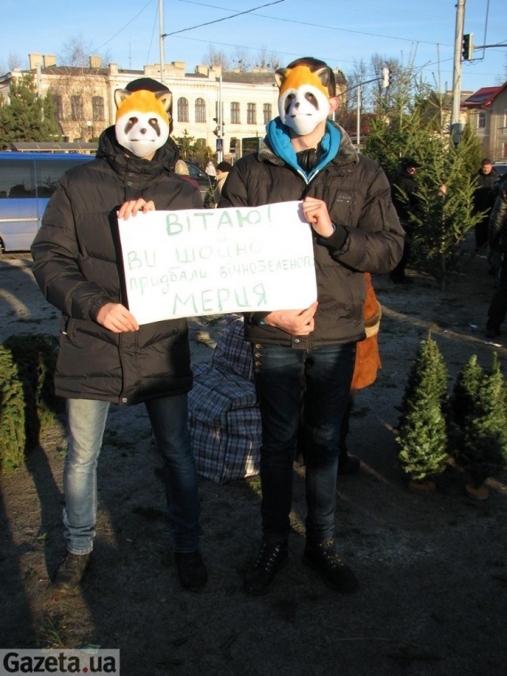 О 15:00 на площі біля залізничного вокзалу 7 людей стали у масках лисичок з плакатами: "Тобі приносить радість вбивство природи?", "Будь як усі: купи труп ялинки додому", "Вітаю! Ви щойно придбали вічнозеленого мерця", "Ти радієш зрубаній ялинці, а мені ніде жити" та "Ласкаво просимо на ринок мертвих дерев".