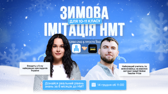 Онлайн-школа з підготовки до НМТ "TURBO ZNO" у співпраці з платформою "Просте ЗНО" оголосила про проведення найбільшої зимової імітації НМТ в Україні. Подія відбудеться 14 грудня об 11:00, і в ній зможуть взяти участь усі охочі - абсолютно безкоштовно.