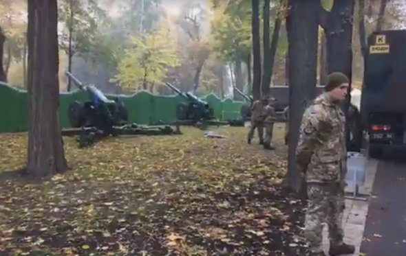 У Маріїнському парку, що у центрі Києва, помітили артилерійське озброєння.