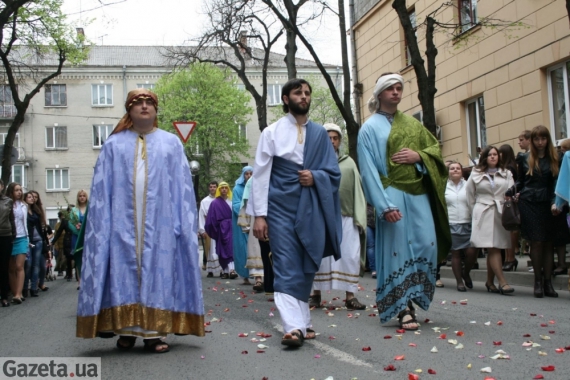Місцевий клуб верхової їзди забезпечив осла, а роль Ісуса грав студент Тернопільської духовної семінарії, брат Дмитро.