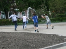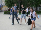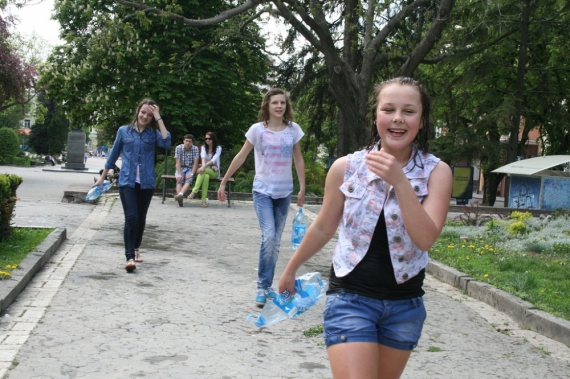 Молоді люди, які зібралася біля фонтанів, переважно обливали один одного. Окрім того – деяких перехожих, які не заперечували проти цього категорично. Обливання в центрі міста відбуваються одразу в кількох локаціях, та триватимуть до вечора.