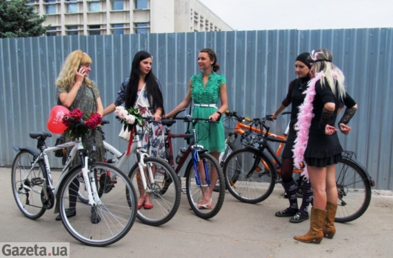 О 12:00 на площі 9 дівчат з велосипедами, 8 хлопців, 6 фотографів та представники ЗМІ. Велосипеди в дівчат прикрашені кульками, квітами та стрічками. Такою була умова участі у велопараді. Самі дівчата переважно у сукнях та спідницях.