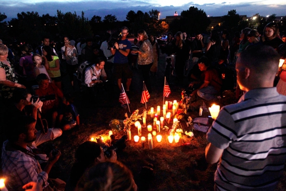 У США у ніч на суботу пройшла церемонія пам'яті жертв кривавої бійні на околиці Денвера, штат Колорадо. Там 20 липня Джеймс Холмс безжально розстріляв відвідувачів місцевого кінотеатру на прем'єрі заключного фільму про Бетмена.