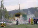 Під час руху вантажівки "ГАЗ-3307", яка перевозила 2 пластикові ємності по 1000 літрів, одна з ємностей тріснула.
