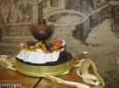 Також в експозиції є торти-натюрморти з марципанами. На одному з них майстерно виліплена з цукерок "скатертина-самобранка" — з салом, ковбасою, варениками, качанами кукурудзи, томатами і навіть смаженим поросям. Кожен відвідувач при бажанні може придбати виставлений експонат. Ціна одного солодкого витвору — від 100 до 250 гривень.