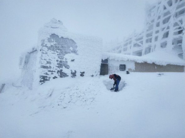 Вчора на горі Піп Іван Чорногірський - одній з найвищих вершин українських Карпат на межі Івано-Франківської та Закарпатської областей - також було сніжно.
