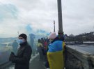 У Києві на мосту Патона пройшла акція, присвячена Акту Злуки. Люди утворили живий ланцюг, як символ єдності людей на сході і заході України.
