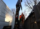 Для виконання роботи була задіяна бригада з п'яти людей, автомобіль з краном-маніпулятором та вантажівка.