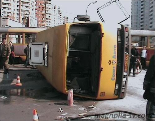 Від сильного поштовху маршрутка нахилилася і перекинулася.