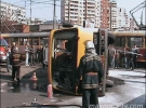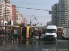 - У житті не бачив подібного, - говорить очевидець ДТП Ярослав. - Маршрутка N445 повертала з Тростянецької на Харківське шосе, у бік Ленінградської площі. На жаль, водій мікроавтобуса не помітив трамвай, який рухався зліва.