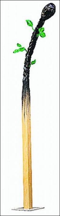 Скульптура - згорілий сірник величиною з доросле дерево, на якій з"явилася жива гілочка із зеленим листком. Сірник оживає, знову стаючи деревом.