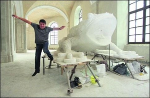 Скульптор Олег Пінчук працює над новою оригінальною скульптурою - шеститонною бронзовою жабою.