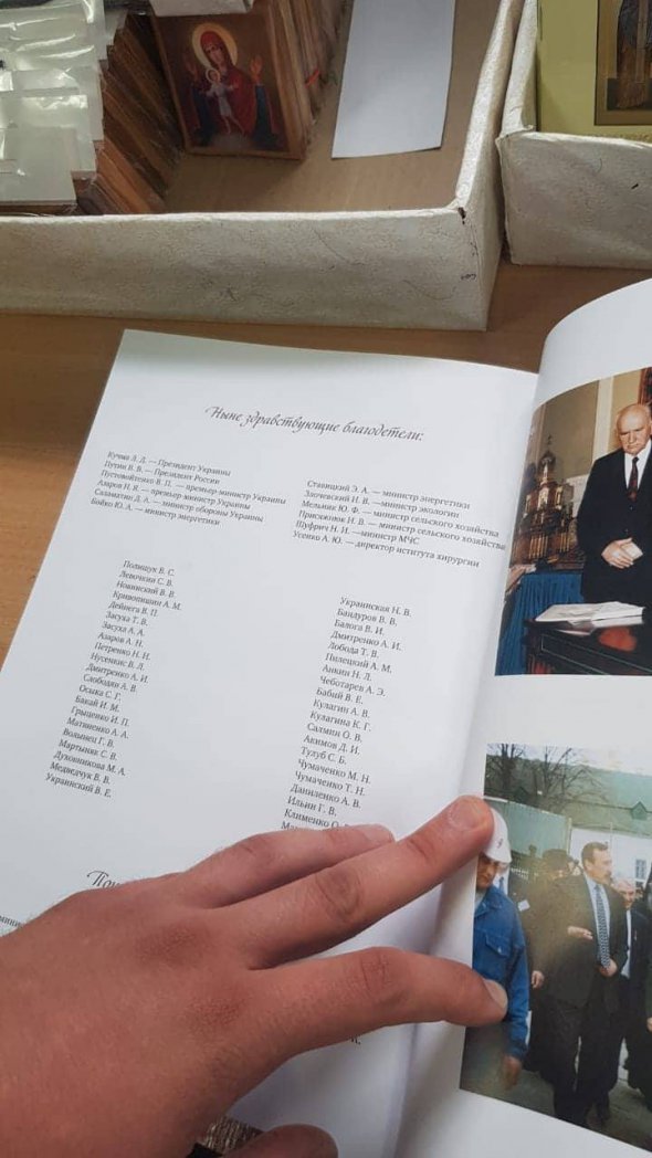 Серед благодійників храму вказали російського президента Володимира Путіна, екс-прем'єр-міністра України Миколу Азарова, колишніх міністрів Дмитра Саламатіна, Юрія Бойка, Едуарда Ставицького, Миколи Злочевського. Окрім них, до списку добродійників увійшов і Віктор Медведчук, передає "Релігійна правда".