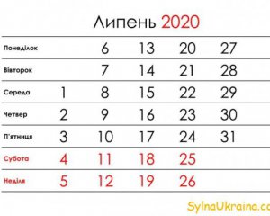 У липні 2020 року не буде жодного офіційного святкового дня.
