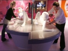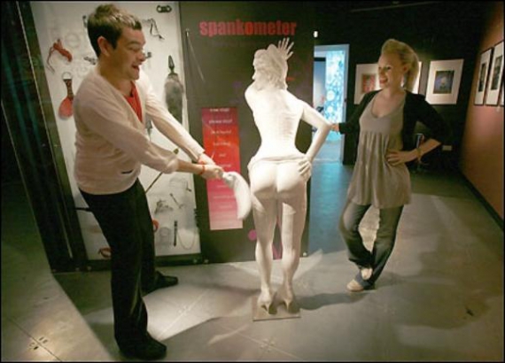 Чоловік-манекен, що нагнувся, запрошує нашльопати його спеціальною лопаткою. Якщо відвідувач робить йому дуже боляче, спалахують вогники, як на ярмарковому автоматі. Також на виставці є гіпсові фігури, що зображають тіла чоловіків і жінок. У них можна запустити руку і спробувати намацати "точку G" або передміхурову залозу. "Оу, йее!" - схвально говорять фігури, коли відвідувач торкається до потрібного місця.