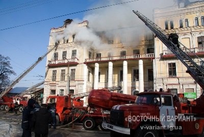 Рятувальники більше 10 годин боролися з пожежею, що виникла в приміщенні Луганської міської консультативно-діагностичної поліклініки № 7 в четвер вночі.
