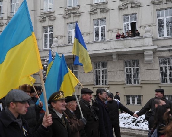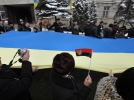 "Приїхали на триденну екскурсію Львовом. Вийшло так, що і на свято Злуки потрапили, - ділиться харків'янин Дмитро Михайлов. - Приємно нині стільки людей бачити. Всі якби за одне, тримаються за руку, співають, веселяться. В нас такого нема. Кажуть, що Схід - це "москалі", а Захід - це "бандерівці". Неправда - всі ми одна Україна. І я в цьому нині переконався. Сфотографувався біля цього плакату з львів'янами, тепер всім цей знімок показуватиму, як братерський".