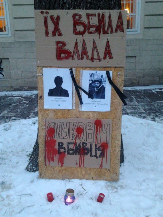 Лампадки поставили і біля Львівської міської ради, біля пам'ятника Шевченкові на Євромайдані. Щохвилини люди приносять нові лампадки та моляться за упокій вбитих.