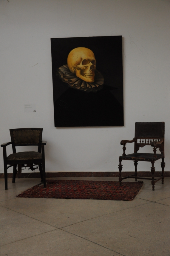 "Меблі старовинні,у них колись зберігали ліки, їх викинула одна аптека, яка робила ремонт. На виставці є роботи, які я малював з десяток років тому, а є інсталяції, які я закінчив напередодні відкриття", - пояснює автор.