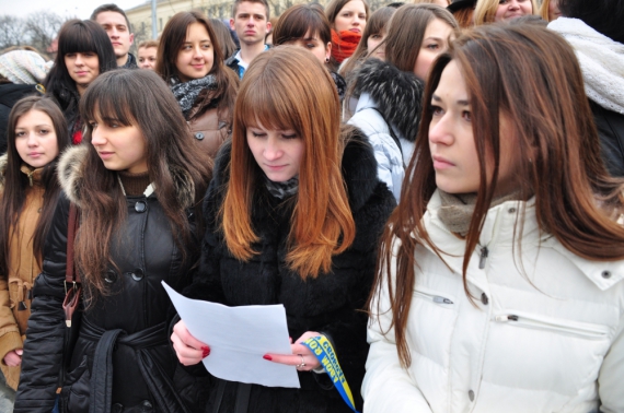 На площі біля пам'ятника Тарасу Шевченкові у центрі Львова півтори сотні студентів пісенним флешмобом відзначили день рідної мови.