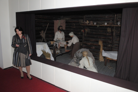 Екскурсовод Наталя Гаврилюк показує сцену "Земський лікар". У образі лікаря скульпутор зобразив Антона Чехова. Сім разів переробляв, щоб досягти схожості