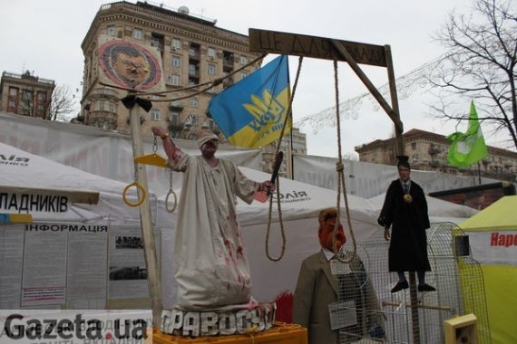 "Який там "Новий рік"! - відмахується. - Янукович украв владу, украв у нас радость. З такою владою нема чому радіти – живуть для своїх самольотів і своїх дітей, а народ український обдерли до краю. - Кидає погляд на газету, що лежить на столі. На першій сторінці – фото ялинки на Майдані незалежності. - Яка влада – така і ялинка!".