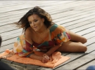 У павільйоні "Укрнаукпопфільму" на столичній вул. Кіото, 27 холодно. Співачка лежить на дерев"яні підлозі на рушнику в прозорій червоній кофтинці та рожевих шортах. По приміщенню натягнута тканина із зображенням моря.