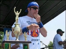 Житель Каліфорнії Джой Честнат став переможцем конкурсу, з"ївши за десять хвилин 59 хот-догів і проковтнувши ще п"ять у додатковий час швидше за свого суперника японця Такеру Кобаясі. Цей 95-кілограмовий атлет вважається одним із найуспішніших пожирачів національного кулінарного символу США. Раніше його рекорд дорівнював 66 хот-догів за 12 хвилин.
