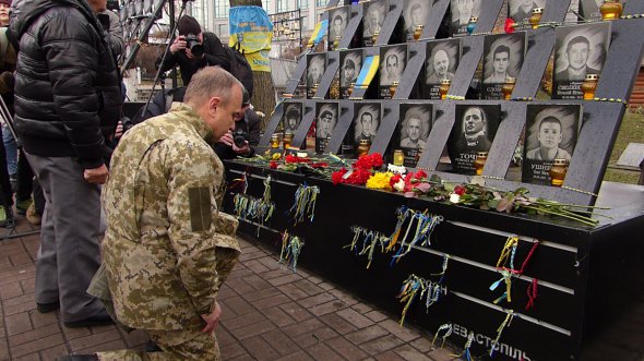 Близько двох сотень людей зібралися на алеї Героїв Небесної сотні, щоб вшанувати загиблих людей під час розстрілів на Майдані. Люди поклали квіти до пам'ятників та молилися за загиблих.