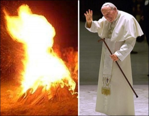 Польські віруючі побачили у полум"ї багаття благословляючу фігуру покійного Папи Римського Іоанна Павла II. Одному з свідків вдалося зафіксувати побачене на фотоапарат, і тепер це зображення транслює телебачення Ватикану.