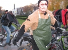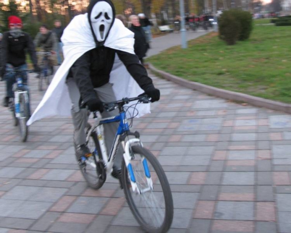 Біля театру ім. Гоголя на велосипеді їздила жінка в образі відьми. Представилася Маргаритою Булгаковою.