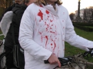 Біля ЦУМу один із учасників вело-Хелловіну випадково врізався в сріблястий "Сузукі", пошкодив дзеркало автомобіля.