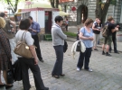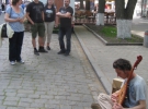 За 15 хвилин зібралося близько 25 чоловік, окремими купками вийшли працівники найближчих магазинів та кафе.