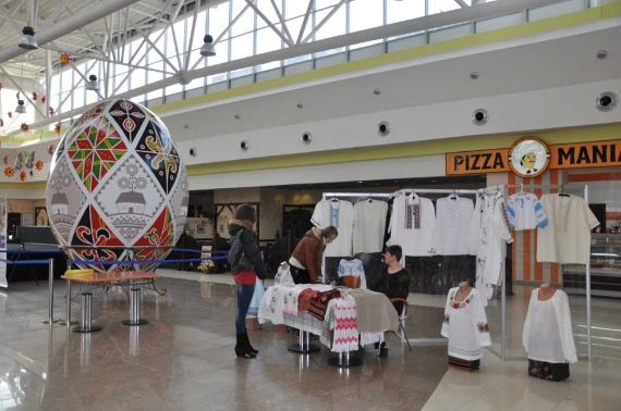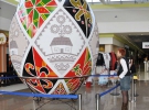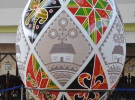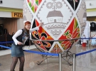 Сьогодні у торговому центрі "Екватор" у Рівному виставили найбільшу писанку країни – величезне яйце, що має діаметр 2,8 метри та висоту 4 метри. Її розписали викладачі з місцевої художньої школи – писанкарка Наталя Дребот та троє майстрів Мартиненків.