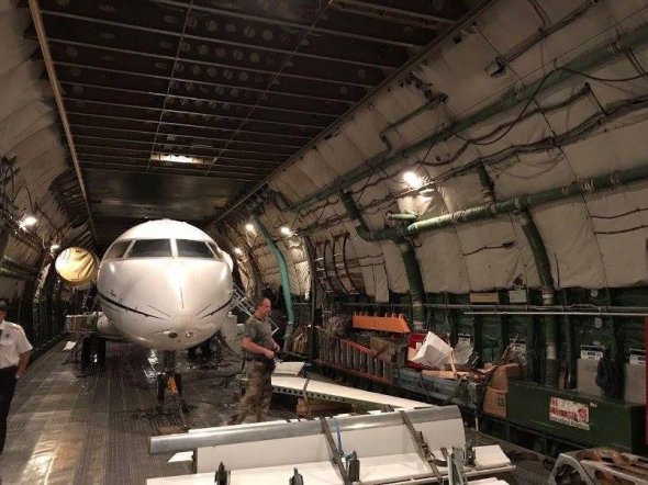 Український транспортний літак-гігант Ан-124 "Руслан" перевіз із Оману в Нюрнберг бізнес-джет Bombardier Challenger 604.