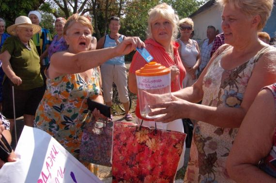 Усвідомивши масштаби події, представники місцевої влади, завчасно обійшли кожного місцевого жителя, переконуючи не йти на акцію протесту. В момент, коли мітингувальники вирушили у бік залізничного переїзду, дорогу їм перекрили кілька десятків працівників міліції. Та незважаючи на це, протестувальників, які розтягнули величезний банер з надписом "Влада, ваша вода по вусах тече, а до рота не потрапляє", помітили пасажири з потягу. Після того як він проїхав, учасники акції зібрали місцевим чиновникам символічний хабар та вирушили до сільської адміністрації. На місці не виявилося нікого, тому транспаранти й імпровізований хабар люди поклали на поріг. Активіста Іллю Сагайдака, який очолив мітинг, по завершенню акції намагалася затримати міліція для "неофіційної розмови".