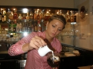 "Новинкою є кава фрапе з ягодами чорниці. Напій подається холодним. Кава збивається в спеціальному міксері з льодом та молоком. На дно додаються свіжі ягоди", - пояснює бармен. - Також ми подаємо оригінальну каву лате, до неї додаємо різні сиропи. Маємо сироп шоколадного печива та ванілі".