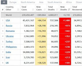 У світі 11 жовтня 6745 людей за добу померли від коронавірусу. За цим показником, Україна на четвертому місці в світі й на третьому в Європі. Цього дня від Covid-19 померли 352 українці.