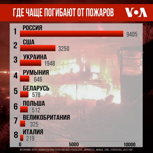 Також серед країн-"рекордсменів" опинилися і Румунія, Білорусь та Молдова. Про це свідчать дані доповіді Міжнародної асоціації пожежно-рятувальних служб, пише "Голос Америки".