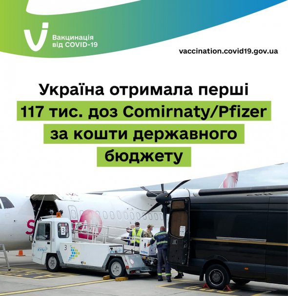 16 квітня до Києва спецрейсом прибула перша партія Covid-вакцини виробництва компаній Pfizer і BioNTech. 117 тис. доз Україна отримала в рамках міжнародної ініціативи Сovax за результатами відкритого тендеру по проєкту "Безпечні та доступні ліки". Нею першочергово щеплювали мешканців і працівників будинків для літніх людей.