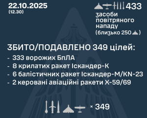 Станом на 12:30 протиповітряною обороною збито або подавлено 349 повітряних цілей.