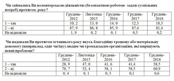 Згідно з дослідженням, 42% українців 2018-го допомагали незнайомцям, 29% жертвували кошти на благодійність і 15% – займалися волонтерством.