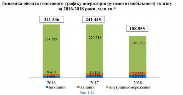 Водночас у 2018-му зросла кількість хвилин, які абоненти використали для дзвінків на інші мережі операторів. Щоправда обсяг спілкування всередині мережі як і раніше переважає.