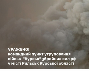 Сьогодні підрозділи ракетних військ і артилерії Сил оборони України атакували командний пункт угруповання військ "Курськ" збройних сил РФ у місті Рильськ Курської області.